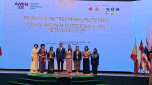 ຕອນເຊົ້າຂອງວັນທີ 21/11/2025 ທ່ານ ນ. ຈັນທະຈອນວົງໄຊ ປະທານ ສະມາຄົມນັກລະກິດແມ່ຍິງ ພ້ອມດ້ວຍ ສະມາຊິກໄດ້ເຂົ້າຮ່ວມປະຊຸມ the Pinnacle Entrepreneures Forum ທີ່ ນະຄອນຫຼວງພະນົມເປັນ ຣາຊອາຈັກກຳປູເຈຍ ໃຫ້ກຽດເປີດກອງປະຊຸມດັ່ງກ່າວໂດຍ ພະນະທ່ານ H.E. Sun Chanthol ຮອງນາຍຍົກ ລັດຖະມົນຕີ ແຫ່ງ ຣາຊອາຈັກກຳປູເຈຍ, ມີ ທ່ານ ບົວແກ້ວ ພູມວົງໄຊ ເອກະອັກຄະລັດຖະທູດຜູ້ມີອຳນາດເຕັມແຫ່ງ ສປປ ລາວ ຈຳປະຈະຢູ່ນະຄອນຫຼວງພະນົມເປັນ ຣາຊອາຈັກກຳປູເຈຍ, ທ່ານ Dr. Eng Lykuong ປະທານ AWEN (ASEAN Women Entrepreneures Network), ມີບັນດາ AWEN Focal Points ຈາກບັນດາປະທານອາຊຽນພ້ອມດ້ວຍສະມາຊິກເຂົ້າຮ່ວມຈຳນວນຫຼວງຫຼາຍຢ່າງຄຶກຄື້ນ